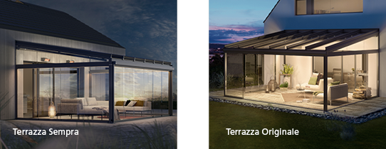 Creëer op uw terras een plek voor speciale momenten - om te ontspannen, samen te zijn en u prettig te voelen. Onder de glazen terrasdaken Terrazza Pure, Terrazza Sempra of Terrazza Originale geniet u van het rustgevende gevoel van bescherming en geborgenheid en ervaart u tegelijkertijd de vrijheid van het buiten zijn.